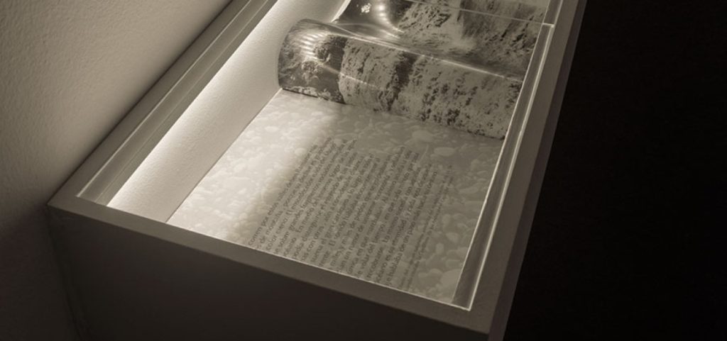 “Esta exposición agrupa quince años de trabajo constante, meticuloso, abierto a las innovaciones técnicas y conceptuales y rico en sus resultados. Todas estas obras se relacionan con las rocas, utilizadas por la artista en tres acepciones básicas: como materia prima que forma, tal cual, o apenas modificada, parte del corpus de varias obras, o captada en fotografías base de otros trabajos.